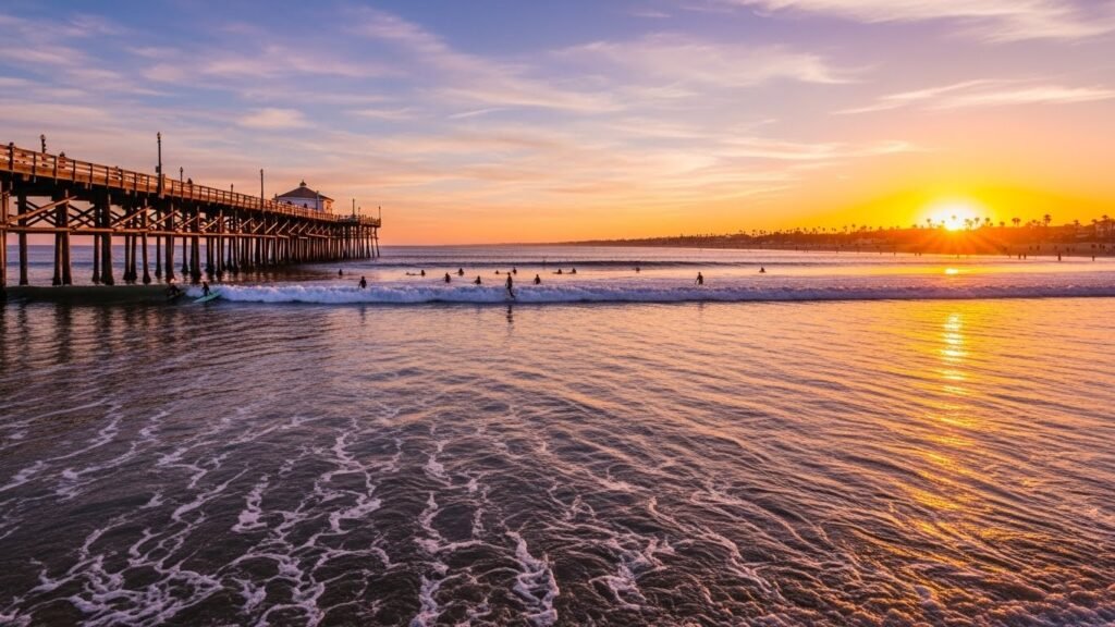 Huntington Beach is the ultimate spot for surfing and coastal culture. You can walk along the Huntington Beach Pier for amazing sunset views. It is one of the longest piers on the West Coast.