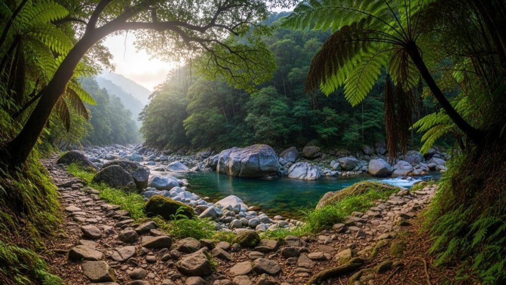 This trail is perfect for families with kids or older folks. It winds through lush greenery and stays mostly flat. You will see a lot of small plants and pretty flowers. The slopes are very gentle, so you won’t get too tired. It is a great way to start your day in the forest.